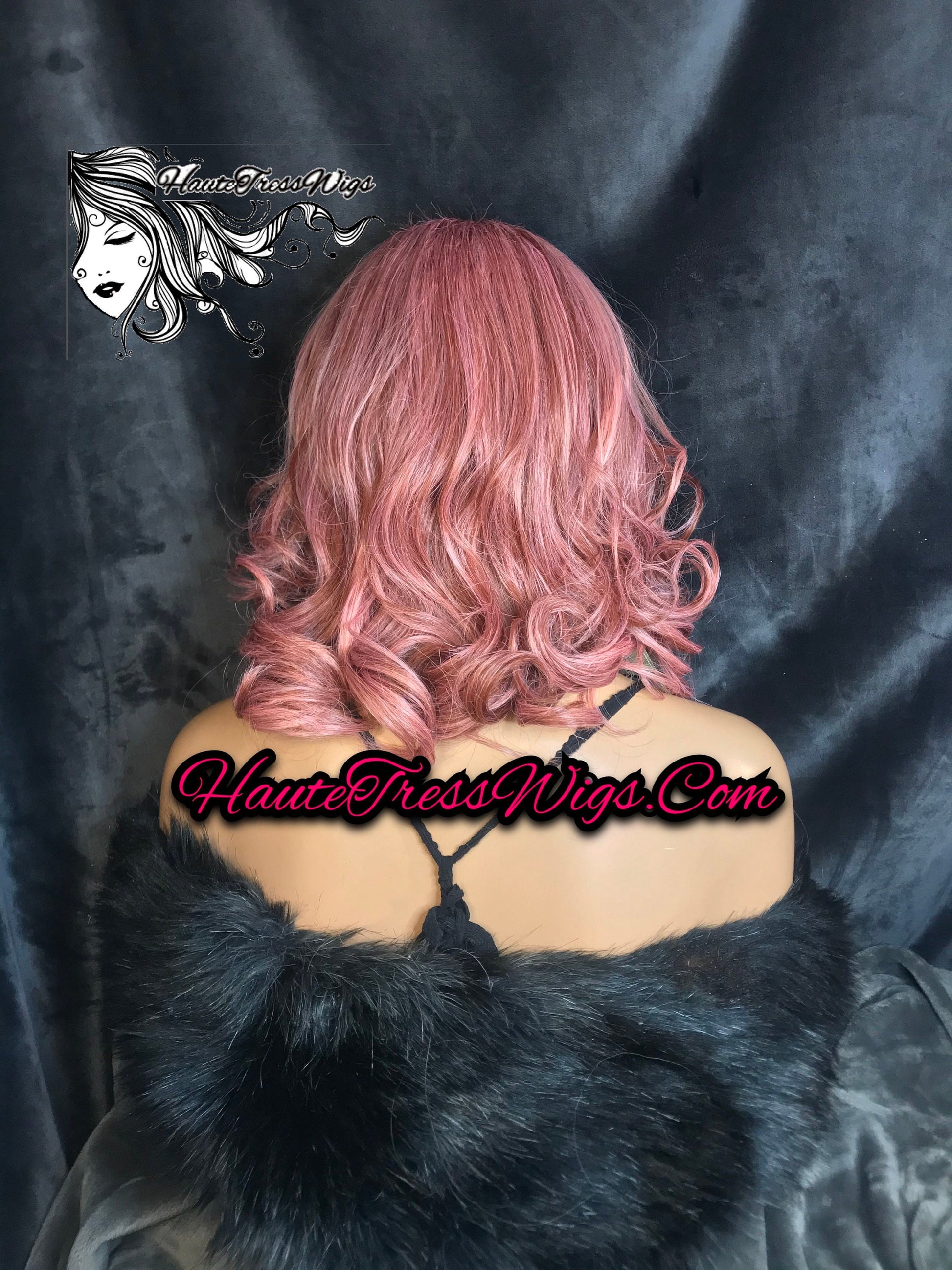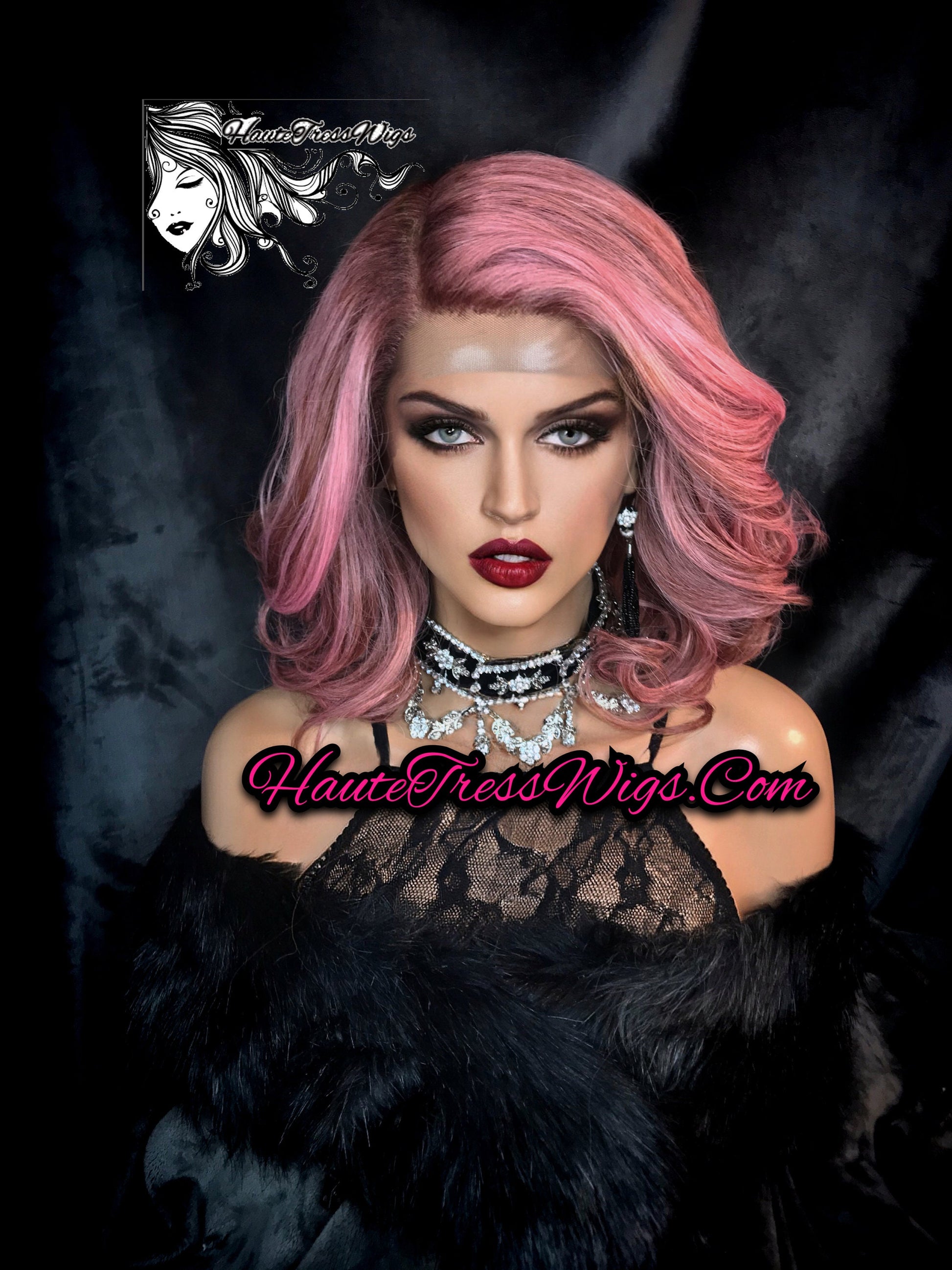 HauteTressWigs.Com Presents: Balayage Pink, Pink Highlights, Pink Mix, Brown Root, Ombre Pink, Layered, Pink Bob, Pastel Pink, Human hair Blend, Lace Front Wig - Rossanna