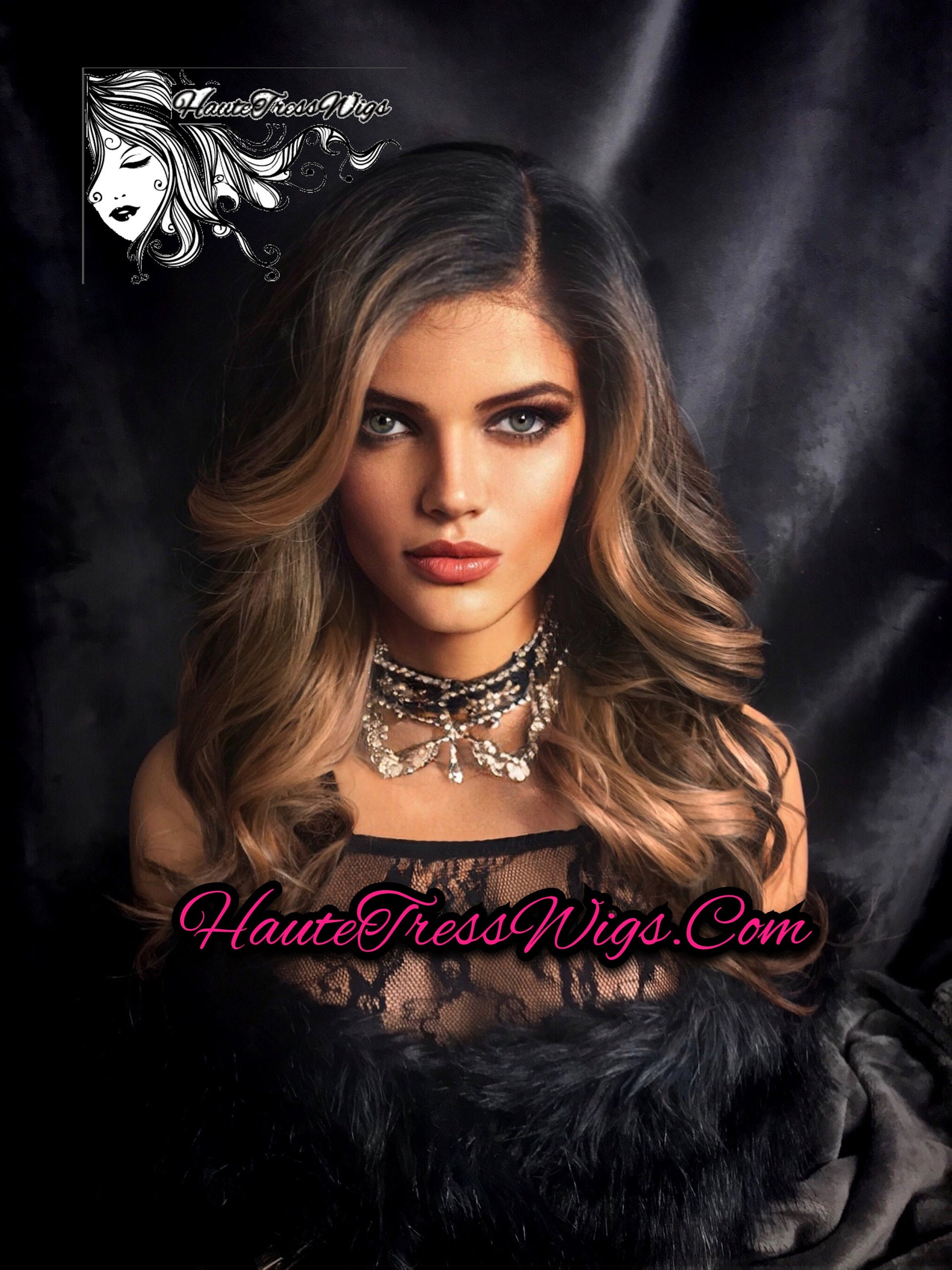 Lace Front Wig, sexy Bombshell dark root root and Balayage Money piece Honey Blonde/Brown body! get the perfect look this summer! the color is simply to die for, it rivals expensive Jon Renau signature coloring but much higher quality in a lace front and open to heat styling for a fraction of the price! soft brown roots! perfect effortless look that it still manages to be a head turner! best of all avoid expensive trips to the salon to touch up your roots or keep toning brassiness of the hair ! be that Money Piece blonde beauty in a matter of seconds without the commitment for a fraction of the price!