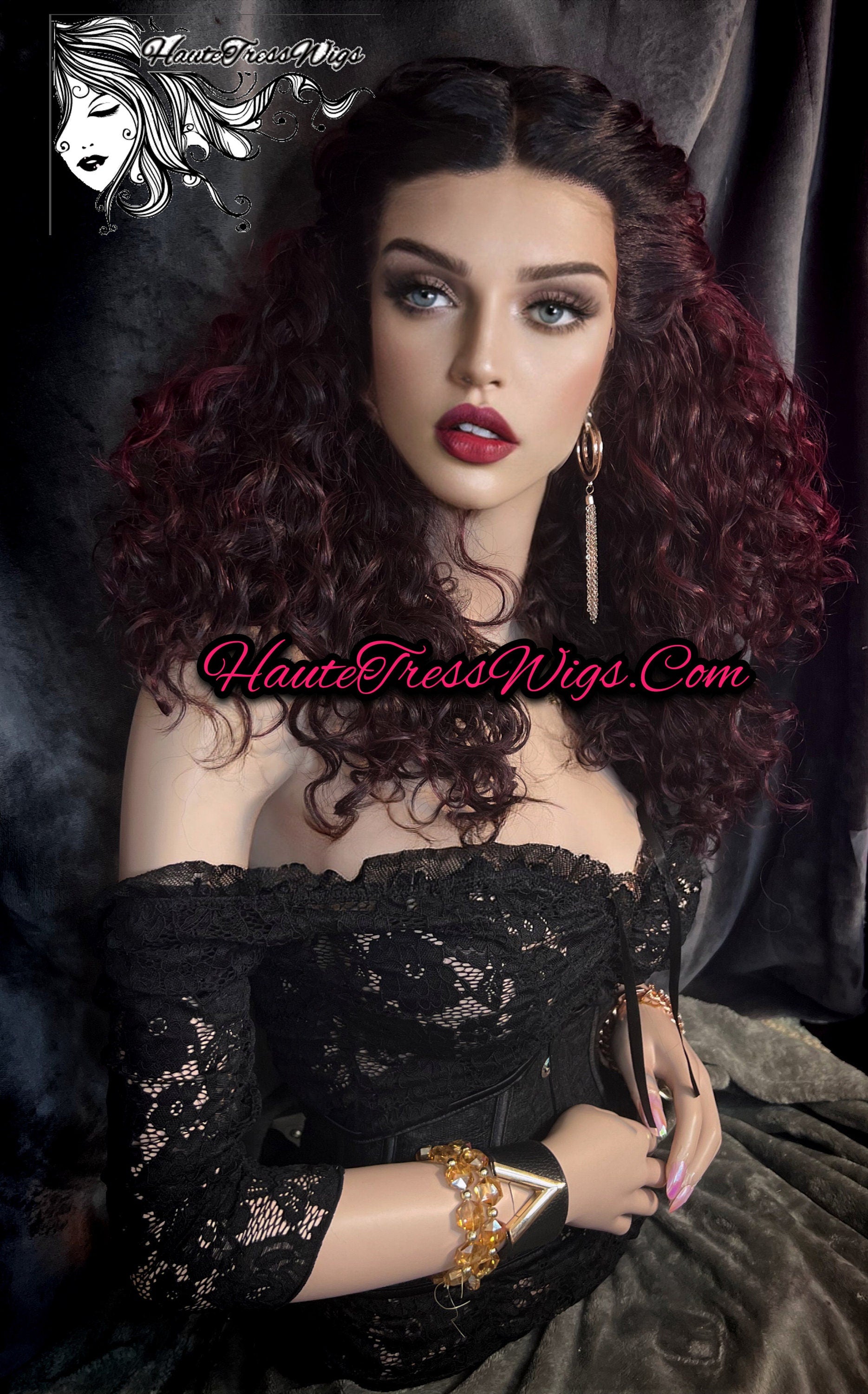 HauteTressWigs.Com Presents: Ombre, Burgundy, Wine, Red, Curly, Dark Root, Lace Front Wig Bombshell Wig, Red Wig, Black Cherry, 99J, Heat Safe - Melondria