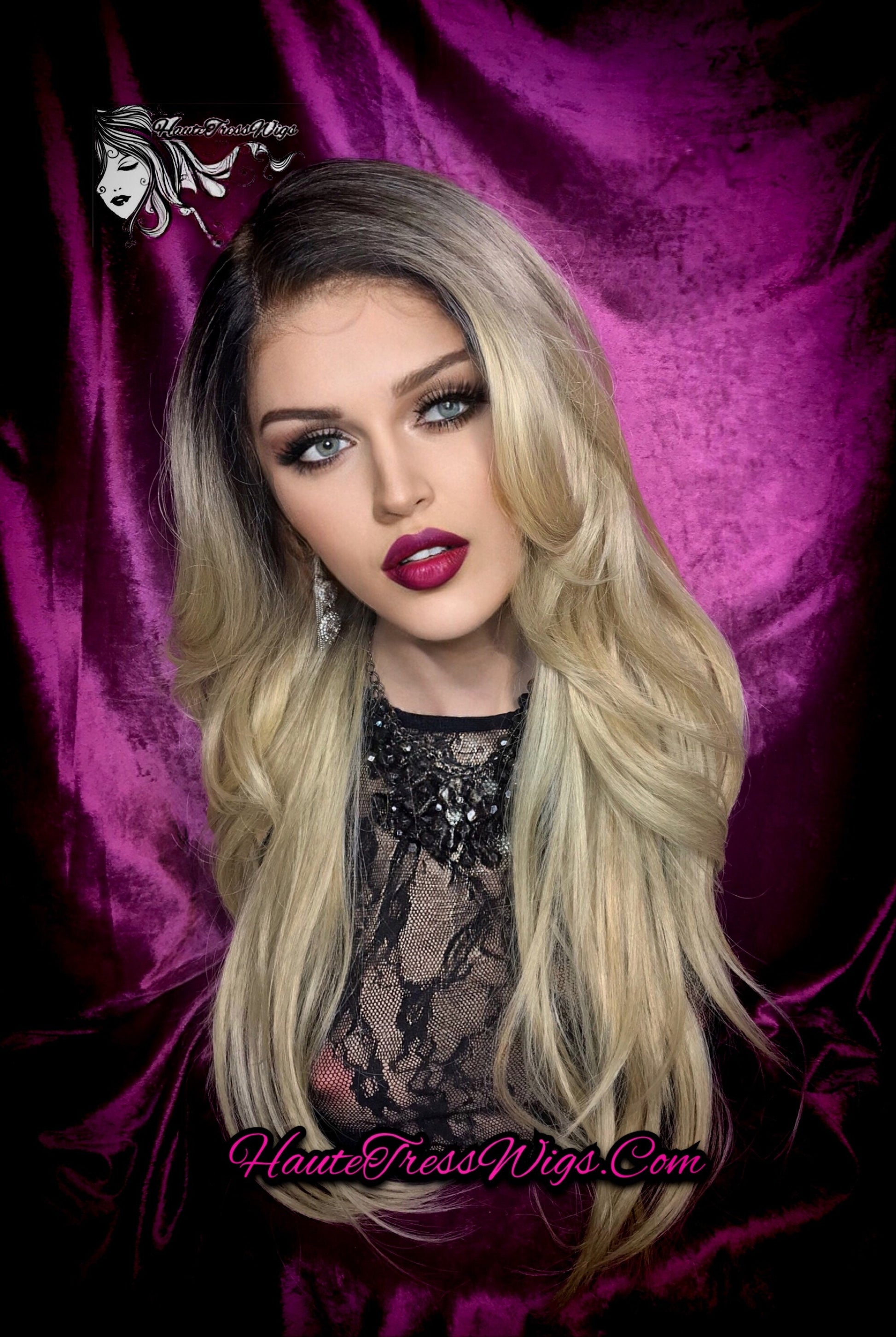 HauteTressWigs.Com Presents: Rooted Blonde, Dark Root Blonde, Layered Blonde, Bombshell Wig, Face Framing, Ombre Blonde, Realistic, Human Hair Blend, Lace Front Wig - Yelena R