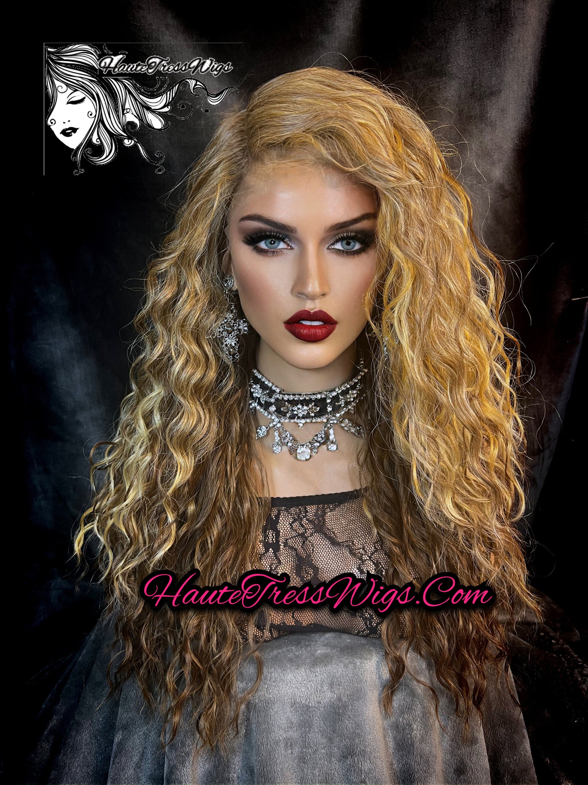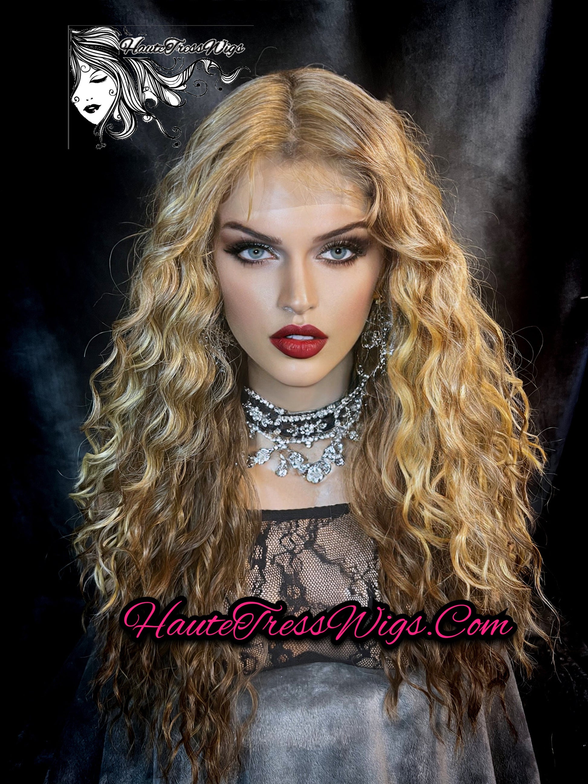 HauteTressWigs.Com Presents: Wavy Blonde, Blonde Brown Mix, Beach Wave, Human Hair Blend, Heat Safe, HD Transparent Lace, Bombshell Wig, - Karrueche